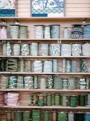 is still being developed, then fabric magician Krista Parker is ready to tell you about some trends in home decor. “Currently, many buyers are swapping grays and white for color! Incorporating printed fabrics and layering printed fabrics creates an exciting look. Other design trends I am seeing are color drenching, wallpaper, and sophisticated window treatments. Cafe curtains, cornices, and panels with tape trim are in demand,” she informs.