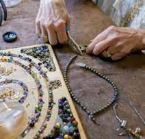 When making a piece, she doesn’t draw out her designs. Instead, she works by feel, sifting through trays of natural gemstones and feeling their energy.