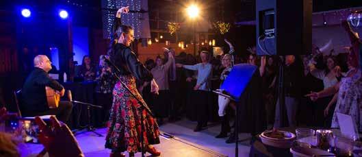 Flamenco artist and teacher Lindsey Bourassa teaching steps to guests at Portland Ovations' POP Annual Fundraiser in March 2023 (Photo: Katie Day)