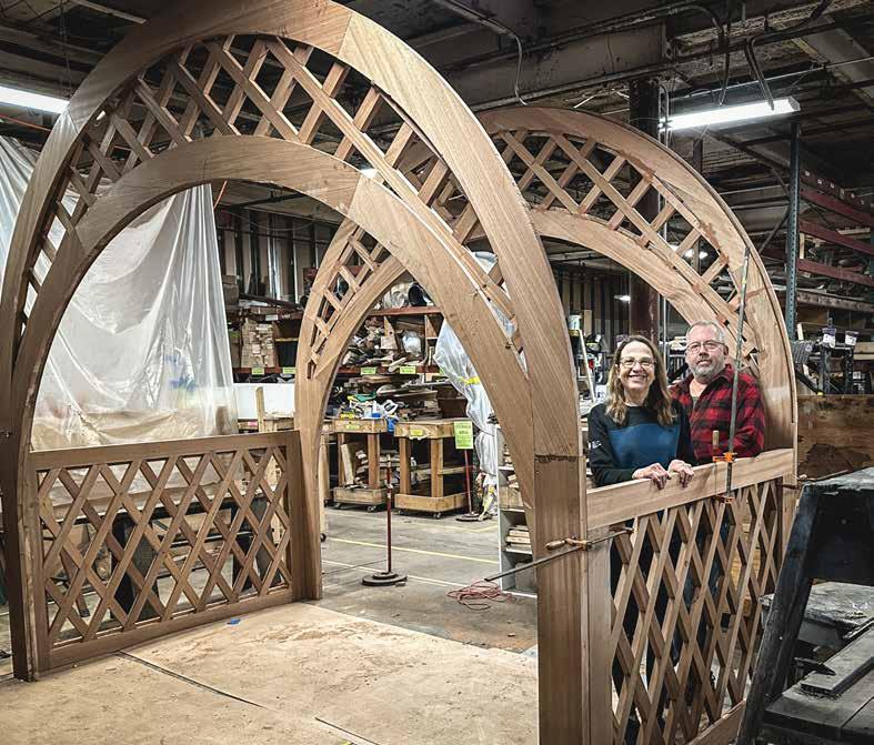 Makers Ann Stokes and Jonathan Bock with their recently assembled Strawbery Banke entryway