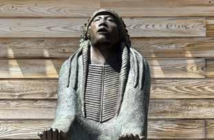 On the expansive grounds of Alnoba in Kensington, New Hampshire, Harriet Lewis gazes up affectionately at the dignified visage of a towering bronze sculpture that dwarfs her petite frame. Titled “Prayer,” this emotive figure of a Native American man strikes a pose of prayerful supplication, eyes half-closed, mouth open in worship, palms upturned. Lewis’ blue eyes shine with memories of the day she and her late husband, Alan, discovered this captivating piece and its Native American creator Allan Houser (Haozous) in the artist’s New Mexico sculpture garden. “We fell madly in love with his sculptures,” Lewis declares.