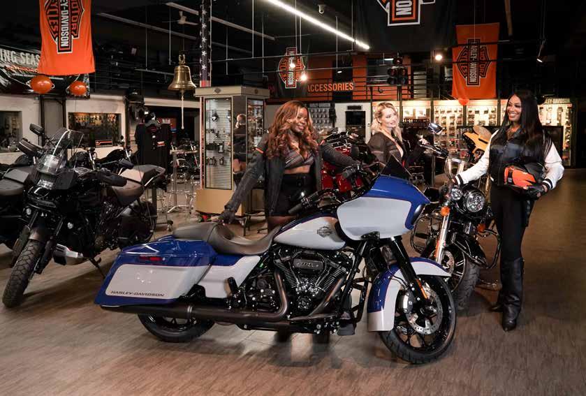 adjust any bike to fit you,” he emphasizes. Holton can attest to the quality of a Street Glide—it’s the bike she rides, and it took her smoothly to California and back. It takes her on regular rides with her crew up and down the highways through Prince George’s County. She appreciates Harley Davidson for supporting Eccentryk’s community fundraising efforts, such as helping them host a fish fry in the Laurel Harley Davidson shop where she once worked in the comptroller’s office.
