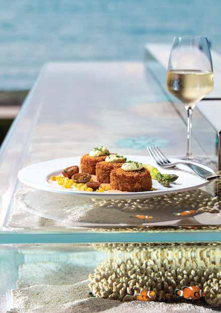 Wow, let us tell you: the food and beverage options here are an absolute delight. We took the “ladies who lunch” title extremely seriously on this trip, and did our best to eat and drink our way through The Breakers. One standout highlight was the crispy crab cakes at The Seafood Bar (would you expect anything less from some Maryland girls?), a yacht-themed restaurant overlooking the ocean with mirrored portholes, an open kitchen concept,and live aquarium-topped bar. The meat inside was so flavorful that no remoulade was needed.