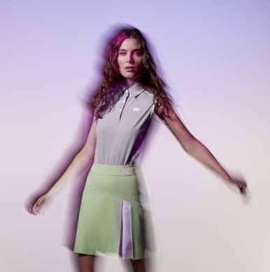 With a focus on comfort and performance, this effervescent collection is dynamic with innovative fabrics and designs, such as shadow knitwear with enhanced breathability, perforated performance mesh polos, sporty dress and skirt silhouettes, and three new fabric weights for temperature control. The “hybrid” fabric provides versatility for daily activities, while “on the course” is designed for peak performance, sun protection, and maximum comfort.