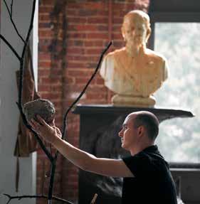 “He walked by one day and noticed there was a kiln in the corner down in the big sculpture studio where the ceramics lab is,” Bellmas says. “He’d done some ceramics in the past, but he was curious about it. He started asking for help to get going on it and fired a few pieces. By the end of his residency, he was