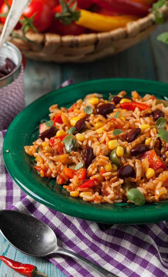 Step 4. Add cooked rice to beef, bean, and veggie mixture.