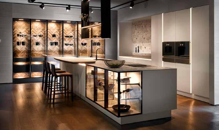 “While both traditional and contempo rary styles are heavily apparent in the Las Vegas Valley, there’s no denying that the newer contemporary styles paired with dark frames are dominating the younger mainstream market,” said Jessica Wells from HyBar, a local window, and door installation company. Dark colors are turning up elsewhere in the home as well. Gone are the white kitchens of the 2010s. Instead, customers are opting for dark oak, wood colors, gray, and mochaccino matte options, according to Euro Kitchen Cabinets’ Georg Wyink, who has found mixing various textures and colors together for slab panel doors also to be incredibly popular recently.