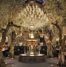 The flashy, splashy RH Yountville is hard to miss as it takes up nearly a full block along Yountville’s ultra-walkable downtown. The Restoration Hardwareowned property is a wine, food, and shopping mecca comprised of five separate experiences—an indoor/ outdoor restaurant with a glass roof surrounded by 100-year-old olive trees and adorned with dramatic crystal chandeliers; a two-story wine-tasting space with its own share of crystal chandeliers and a sleek limestone bar; a limited-production wine center; an espresso bar; and a boutique design gallery grander in scale than even its ever-so-lavish sister property at the Scottsdale Quarter in Scottsdale.