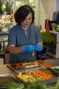 Locals enjoy a night out, thanks to participating businesses at NRBBA’s “Dine Around ARTesia” (East of MacKay) event. 1: Smartfitt Training: Helping clients improve their health through Brazilian Jiu-Jitsu. 2: Hi Brazil Market: Kerry Stitt displaying her resin artwork outside. 3: Brogino's Bar & Grill: Serving up gourmet Italian since 1977. 4: BlueSalt Fish Grill: Specializing in grilled seafood, tacos, and salads. 5: J's Flowers: Co-owner Jenny demonstrating her Korean sushi making skills. 6: Menchies: Bringing sweet smiles to kids and adults alike. 7: El Tarasco: Preparing delicious Mexican food since 1969.