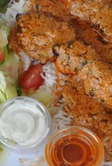 The restaurant’s name, Al Hamra, refers to the historic Lebanese city known as the “red one.” Today, it has become synonymous in the South Bay with hearty kebabs, healthy ingredients, and community warmth. The menu features core proteins—chicken, beef, fish, and lamb—served as plates, wraps, or bowls, along with specialty dishes such as masalas. For larger gatherings, Al Hamra offers catering platters.
