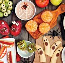 These fan favorite boards can easily be kept healthy with some additions. Make any treat spooky with edible eyeballs. Adding them to a small snack such as mini bell peppers or grapes and strawberries is a fun way to stay on theme without sacrificing a healthy streak. Eyeball salami rolls also can be added, starting first with a green olive in the center, surrounded by a roll of mozzarella cheese and then surrounded by salami or even prosciutto.