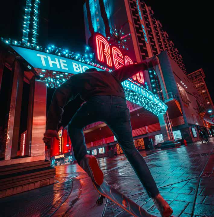 “The first couple of times I went downtown, my wife was having her nails done and it would happen to be at night,” he says. “I’d go with her and then go walk around during her appointments. That’s when I realized I like night photography a lot. It’s a little more challenging from a technical perspective, but also Reno is a unique city at night. The colors are eclectic. Interesting people come out at night. You get tourists, locals, police, and fire. The city not only looks different but behaves different and nighttime is definitely my jam.”