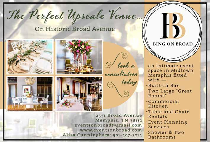 Let us help you achieve your vision of a clutter-free, beautiful life. 901.219.5673 / bluepencilhome@gmail.com bluepencilhome.com HOUSE AND PET SITTING | SHOPPING | DELIVERIES ERRANDS | LAWN SERVICES | TRANSPORTATION | AND MORE! NEED A HELPING HAND? FULL-SERVICE CONCIERGE SERVICES 901-275-8527 ◆ 4guardianservices.com Antique, Estate and Vintage Jewelry. We will also repurpose jewelry to create a modern keepsake for the next generation. Look for us around Memphis and the Midsouth at pop-ups or trunk shows. Please contact Nikki McVean for information or appointments. (901) danesroadantiques.com219-1312 23| CITYLIFESTYLE.COM/RIVERCITYSEPTEMBER 2022