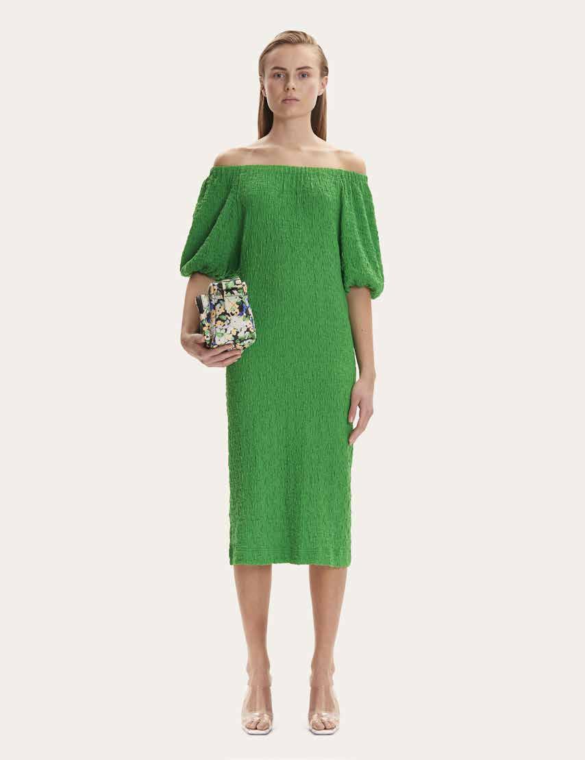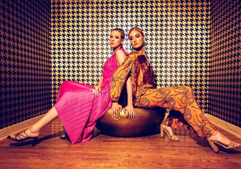 Lockdowns whittled away at the relevance of self-expres sion in our wardrobes as panache and personality gave way to an overabundance of generic athleisure. It is time to shelve the sweats and make a statement. Everyone has places to go again, and local retailers are bringing creative solutions to your closet this September. Playing with proportion, the best looks for the season are pretty and polished. Heading into the cooler tem peratures, embrace new lengths, intense color and state ment-making accessories for your parties and pastimes. Hemlines are long and sexy. Jackets are voluminous and textured. Gowns are sexy as ever, and a cowboy boot is always a good idea.