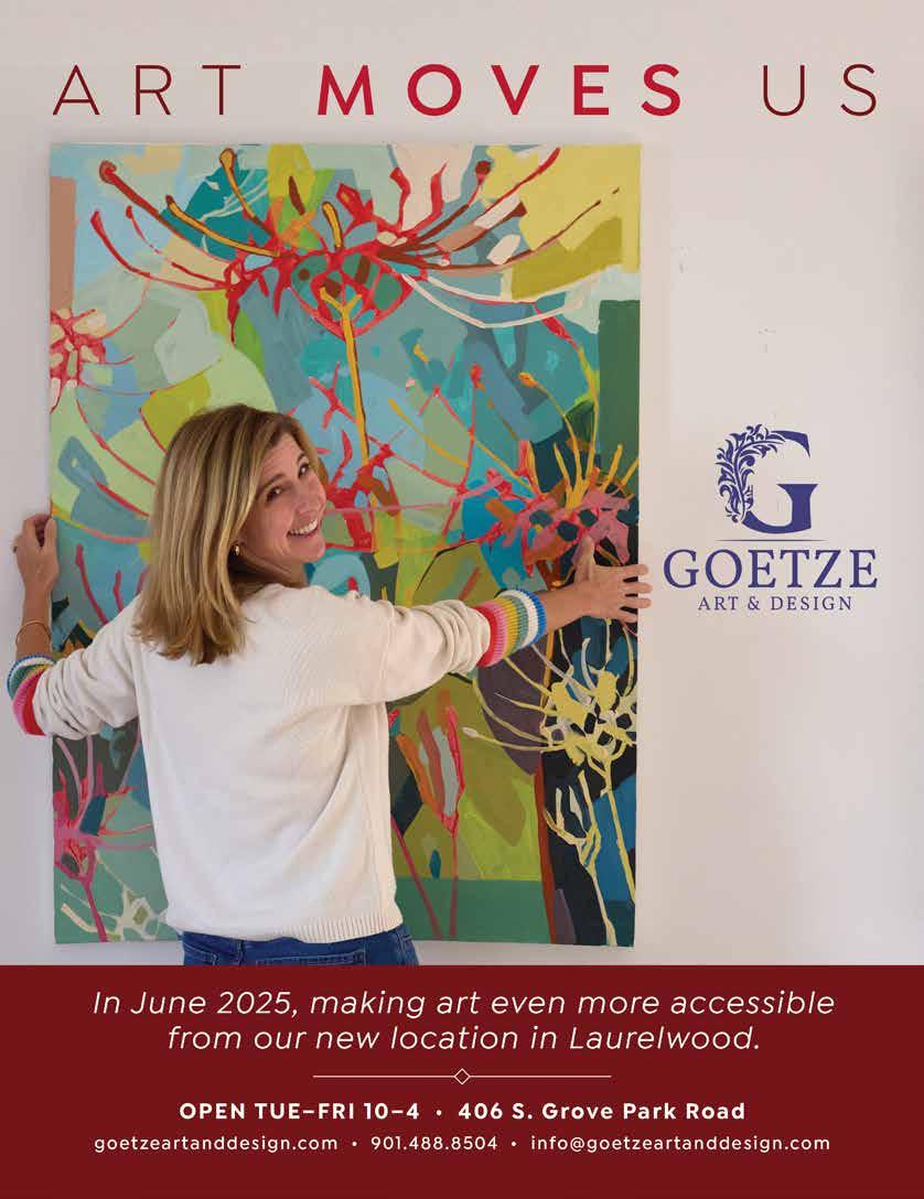 Her work — design and illustration, public art and fine art — is anything but predictable. From wrapping the Dixon’s van in vibrant, dreamlike patterns to transforming the Brooks Museum patio into a summer wonderland with color- drenched umbrellas, Kong Wee doesn’t just make art; she builds sensory-rich experiences. Her Overton Park sequin bird glimmers in the sunlight, while a rabbit sculpture at the Scheidt Family