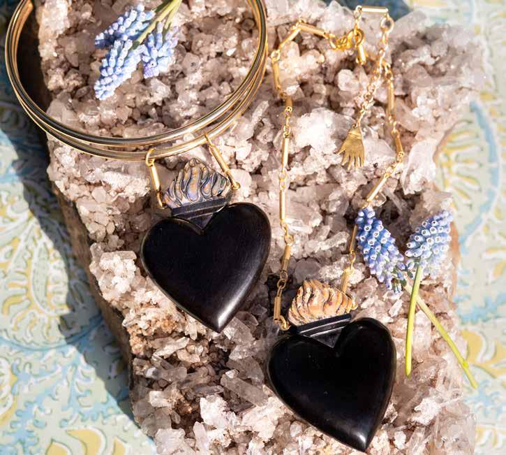 What a way to elevate her everyday tee. Mimi of Amulet by Brave Design designs these burning hearts, a symbol of never-ending love. Handcarved by artisans in Bali, the base is natural ebony, and the flame is abalone shell. A reminder that love is the thread that weaves us all together.