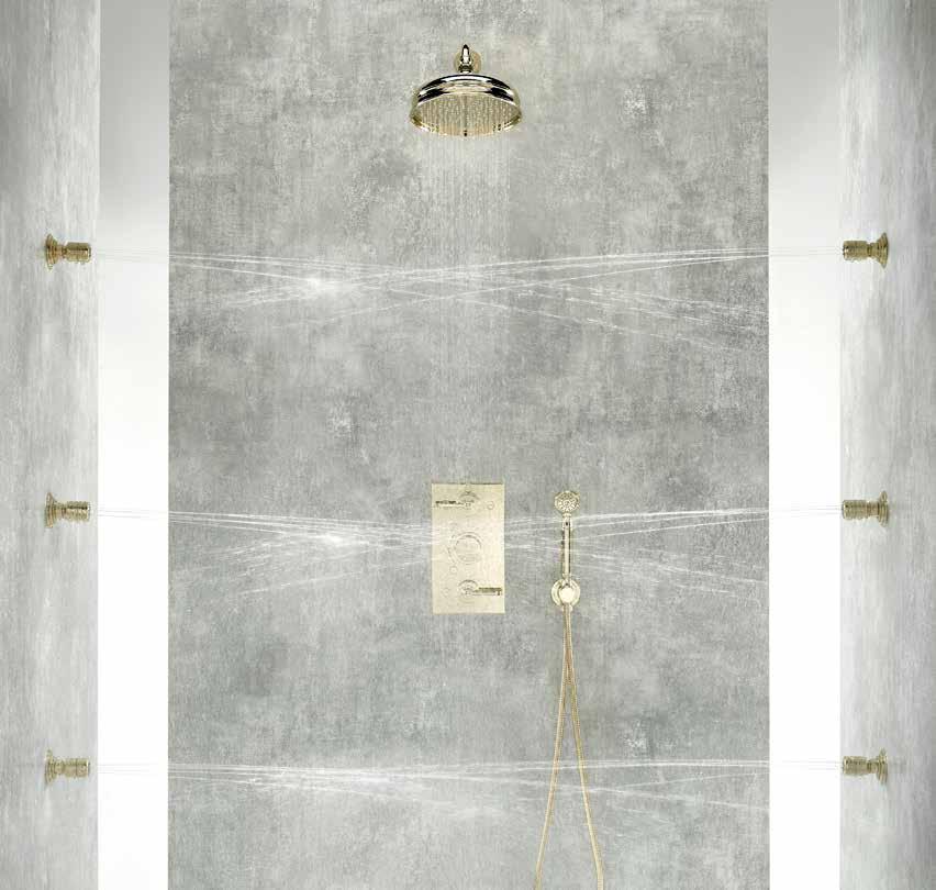 a layer of softness, perfectly contrasting the cool gray concrete plaster and cherry red mosaic tiles.