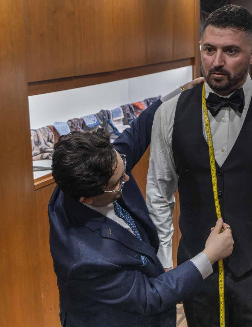 It’s a collaborative journey built on trust, where the final garment reflects more than style—it reflects personality. “We’re not just making suits,” Vincent explains. “We’re helping someone tell their story, in stitches and seams.” Every detail—from the lapel style to the lining, button selection to monogram—is selected with the client’s lifestyle, preferences and unique flair in mind.