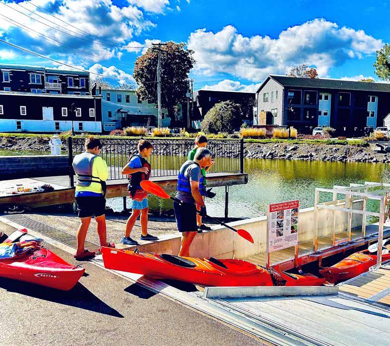 In the years since, Fairport has embraced the mission. The dock and launch area have been revamped with an adaptive BoardSafe kayak launch to allow people in wheelchairs, and those with disabilities, to more easily enter and exit. Adult changing rooms have been added to the public restrooms. Trails have been made more accessible for wheelchairs, the village has more thoughtfully considered the placement and usability of benches, curb cuts, and parking, and sidewalks are currently under construction to remove hazards.