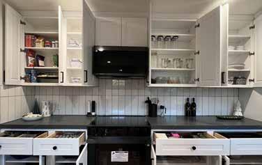 For appliances, this client had ample countertop space, allowing us to arrange small appliances in practical, convenient spots. The final touch was printing labels to enhance functionality and maintain order in her beautifully organized kitchen.