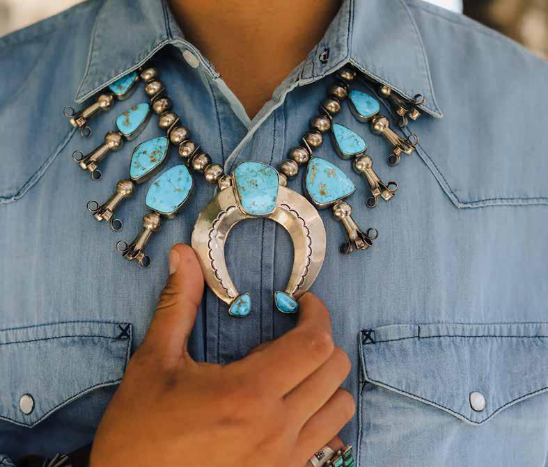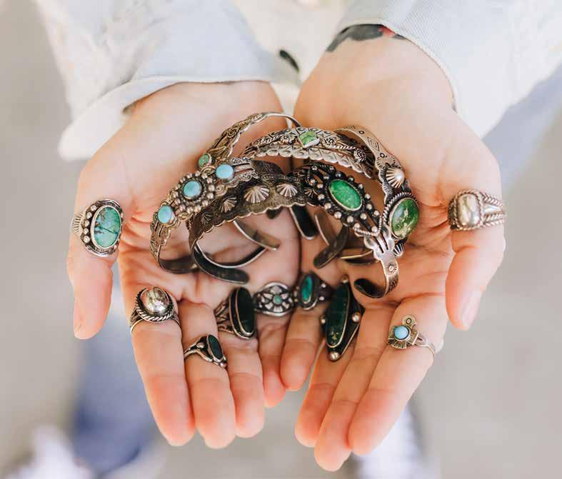 play place.’ I encourage people to try pieces on, play with them, and bring in their own jewelry that they are trying to match. The inventory is expansive, so it’s hard not to find what you’re looking for!” The boutique’s warm, inviting atmosphere encourages visitors to explore, try on pieces, and even bring in their own jewelry to find the perfect match. Charlotte’s deep appreciation for history is woven into every piece she selects, from classic turquoise cuffs to rare artifacts like an Apache necklace from the mid-to-late 1800s, crafted from red mud beads and repurposed brass