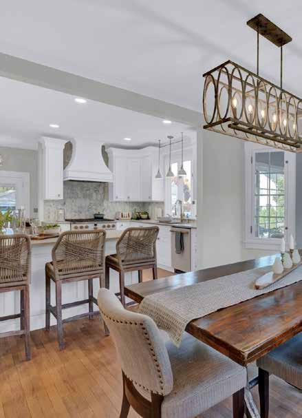 Much needed function was provided with the addition of a butler’s pantry housing a dedicated coffee bar and custom built storage seating. They even raised the ceiling by 7 inches. Design elements helped to showcase these improvements: Gallery walls, portrait murals, under cabinet lighting, painted fireplaces, hardware, upholstery, and of course, throw pillows.