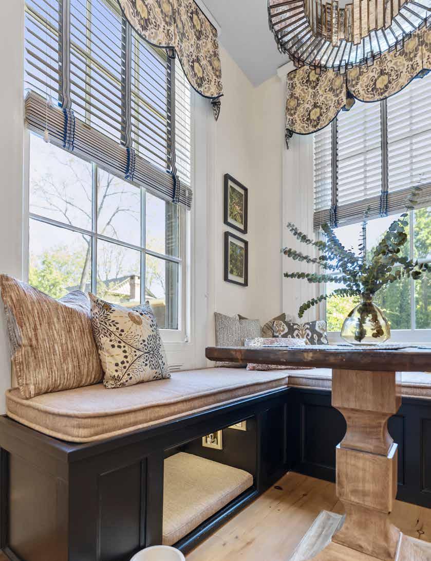 1: Create a space where friends and family can gather comfortably to interact and make memories. Custom banquet seating, upholstered cushions, and a salvaged barn house table will make your guests feel at home. There is room for everyone at this cozy breakfast nook - even the family's fur baby!