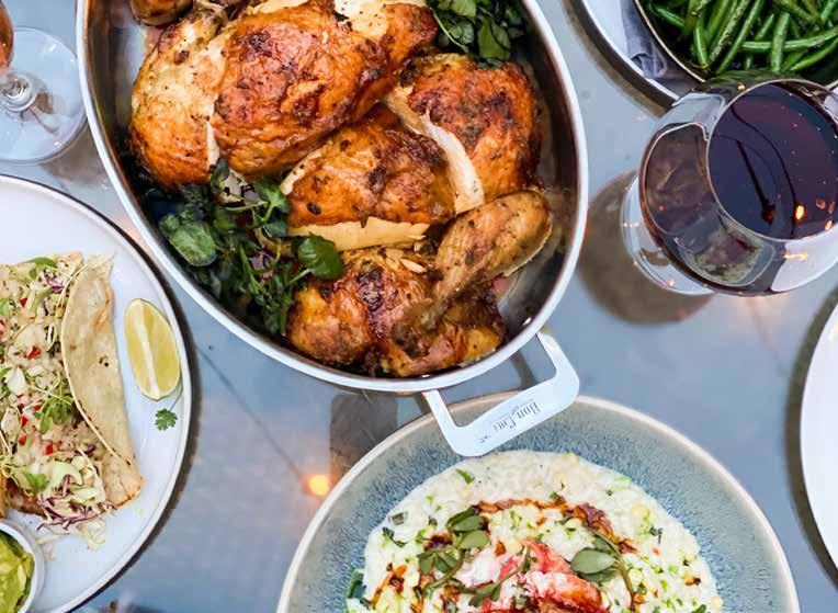 Hotel Yountville , just steps from more than a dozen tasting rooms and boutiques and built using river rocks from the nearby Napa River, has elegance to spare—and that extends to Heritage Oak, its signa ture eatery. Guests in the know always arrive prior to their reservations for killer craft cocktails (and adult popsicles!) at the Y Bar before being seated for elevated comfort food infused with wine country sophistication.