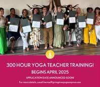 Ready to deepen your yoga journey? Giving Tree Yoga in Smyrna Market Village is thrilled to launch its first in-person 300-hour teacher training! With inspiring modules and guidance from experienced instructors, this program starts on April 25. Applications open soon, so don’t miss this unique opportunity to expand your practice. For details and application updates, email Karina at karina@ givingtreeyogasmyrna.com. Namaste!