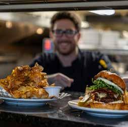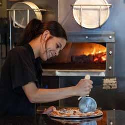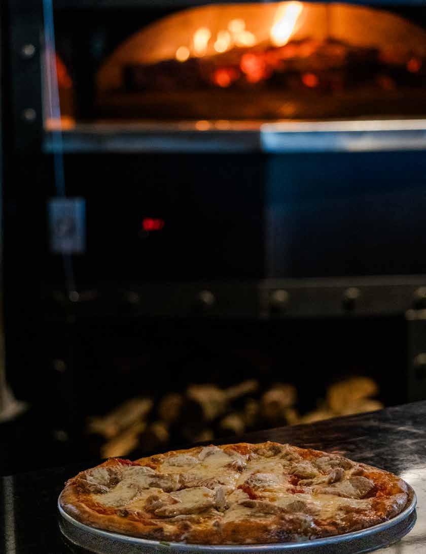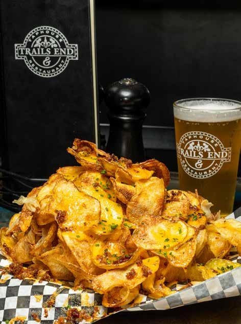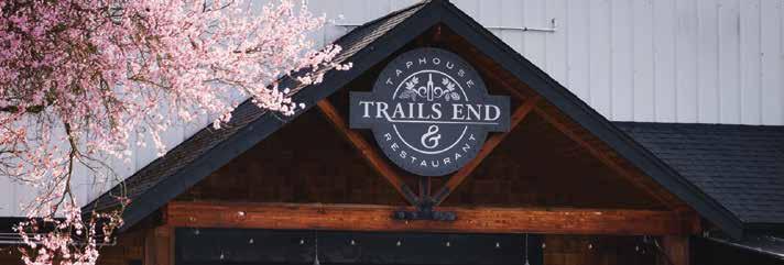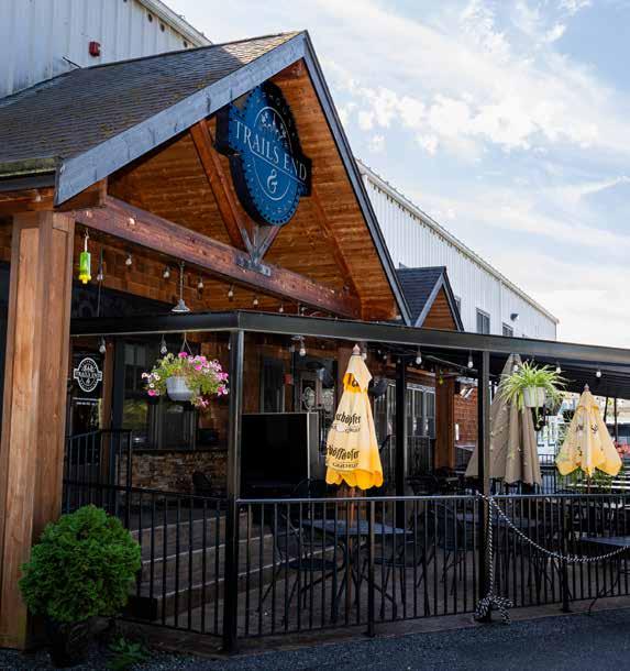 The restaurant space of Trails End is perfectly outfitted with a dark and cozy bar area complete with twenty-eight taps as well as a family-friendly dining area, and outdoor patio seating. The woodfire pizza oven sets Trails End apart from any runof-the-mill pub stop and makes a bold and inviting statement: delicious things are made here.