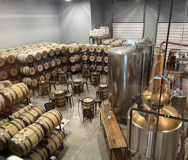 constructed building, home to a grouping of beverage producers including Gorman, JM Cellars, Laterus, Two Vintners, and Guardian, all wineries along with J.P. Trodden. Upon visiting the distillery, you will find a beautifully appointed tasting room where you can sample nearly all they offer, including the newest whiskey, the Bolster Road Maple Rye Whiskey, a departure from their tradition but a blend with strong ties to their heritage.