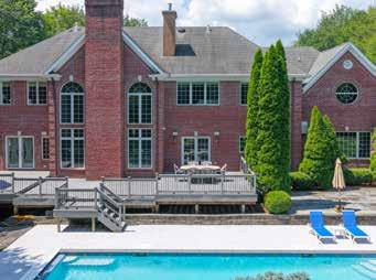 The finished lower level extends versatility with a third tier of living space, ideal for media, recreation or wine storage. Outdoors, the grounds set this estate apart: a 40-by-20-foot heated gunite pool with dual waterfalls, granite coping and Kool Decking forms the centerpiece of a resort-style setting. Expansive terraces, a gazebo and professional landscaping suit both quiet mornings and festive entertaining.