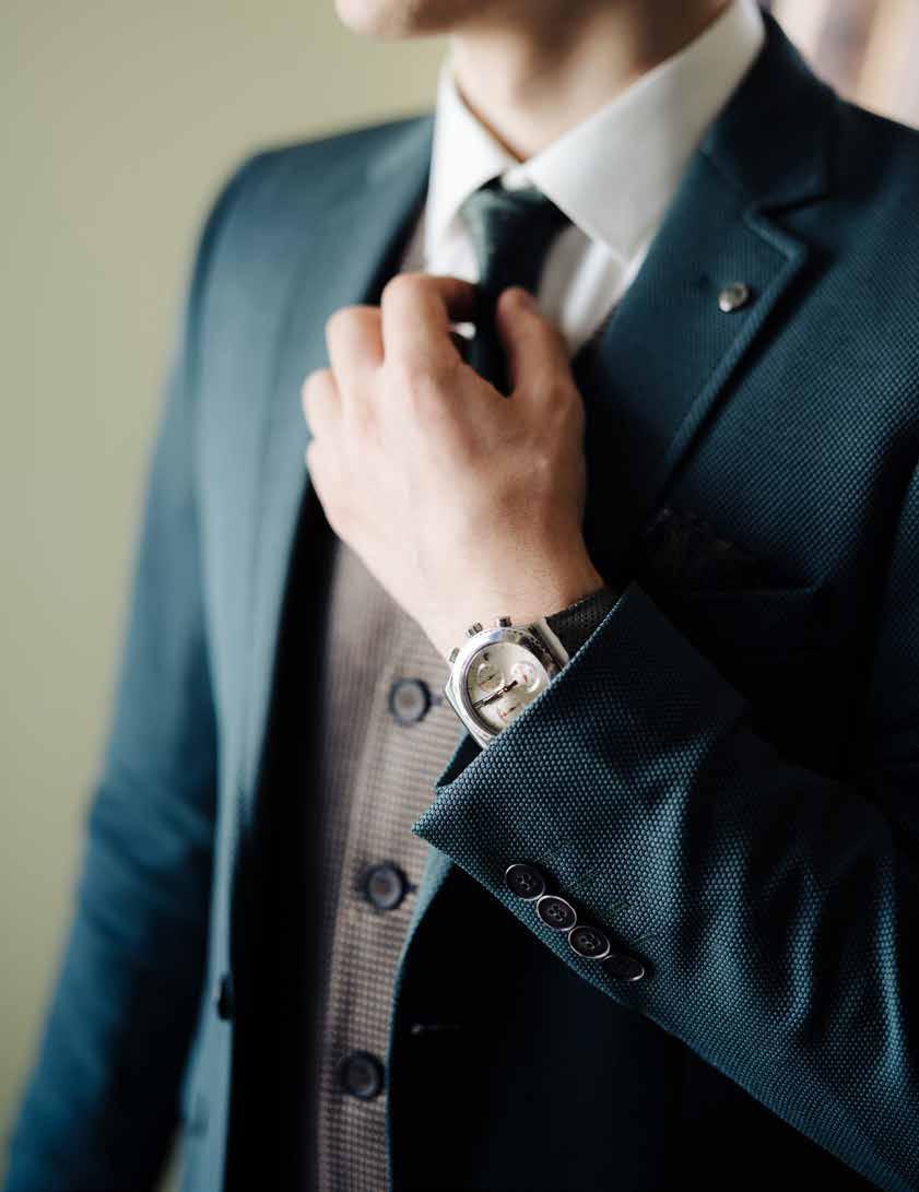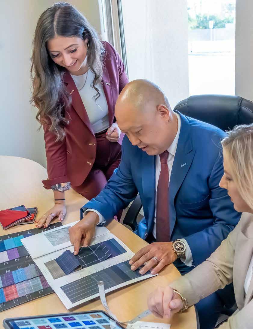 WE HEARD YOU WORKED WITH PATRICK KANG OF ACE LAW GROUP. Jessica: “Yes, we have enjoyed working with Patrick. He is kind and easy to work with and knows what types of colors and fabrics he likes but is open to suggestions too. He gifted a suit to his partner, Kyle, who had been working extra hard on a few time-consum ing cases. They are both very busy and were ready for a refresh. Patrick ended up going a little bolder with his fabric selection while Kyle chose a subtle but vibrant solid.