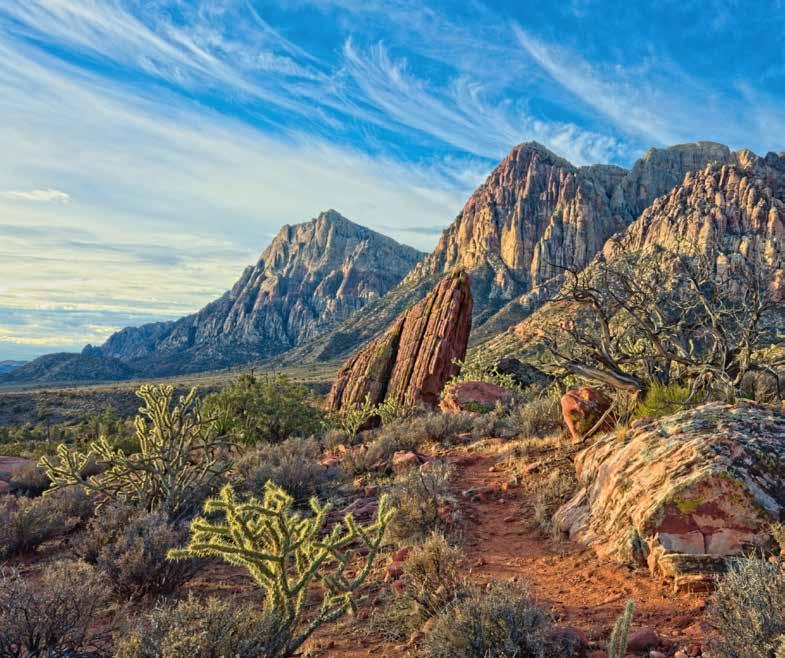 Lighting is central to Tom’s photographic style. “A key element in photography is lighting. The term golden hour for landscape and wildlife photographers is the time, usually up to one hour after sunrise and the hour before sunset,” he says. But Tom also embraces the unpredictable. “You can often have dramatic landscape lighting as a storm starts to develop or dissipate in the middle of the day. Natural lighting can highlight wildlife and give your subject a more dramatic look. The glow and shadowing of a sunrise can make the magnificence of the Rainbow Mountains of Red Rock Canyon take your breath away.”