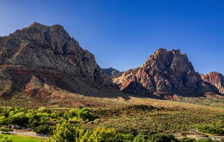 The Spring Mountains in the park dramatically rise from the surrounding desert landscape, creating a striking contrast between the lush greenery of the park and the arid environment. The elevation of the park is approximately 4,000 feet, offering refreshing temperatures, 10 – 15° cooler than the valley below.