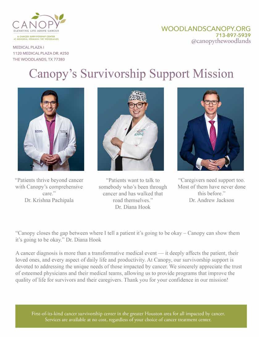 • Canopy Cancer Survivorship Center for survivors, regardless of treatment provider