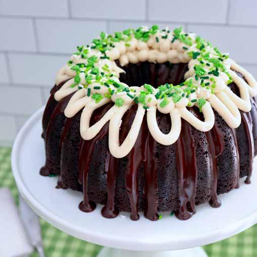 For St. Patrick’s Day, here's a boozy chocolate Bundt cake that’s perfect for the occasion. Its inspiration is the Irish Slammer, an iconic fizzy shot. The cocktail combines Guinness Stout, Irish whiskey, and Irish cream liqueur. The cake begins with a stout spiked batter. The dark bold beer imparts a rich, roasty flavor and brings out the deep flavor of the chocolate. Drizzled over the top is a smooth Irish Whiskey Glaze that is so heavenly you’ll be tempted to drink it. Finally, puffs of Irish Cream Frosting top things off. Make sure to get every layer on your fork so you don’t miss the cake’s magical mix of flavors. You’ll find that eating your cocktail is even better than drinking it. Serve Lucky Guests This Tipsy Irish-themed Cake On March 17