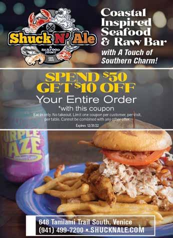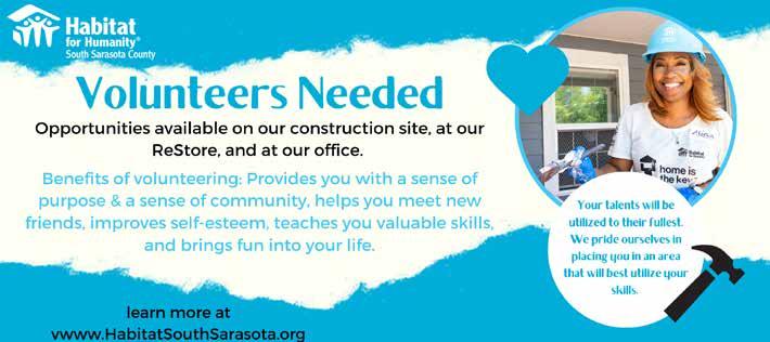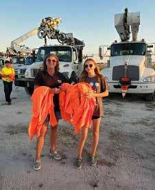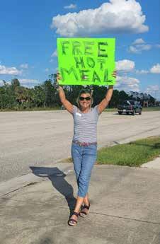 8: Megan Randall and Casey Robinette from Habitat South Sarasota County Restore handed out tee shirts donated by UWSCC. 9: Emily Shaw, North Port Chamber of Commerce membership coordinator, offers free hot meals to those in need. 10: Move Mountains provides commu nity service opportunities for children, which helps them build empathy, and practice teamwork and leadership. 11: Young professionals Jaiden, Christina, Matt, Angie, and Eric volunteer to distribute food, water and supplies. 12: Don, Eric, Christina and Sarah serving hot meals in North Port donated by Anna Maria Oyster Bar. 13: Mary Beth Hansen, owner of Nokomis’ Paradise Grill, prepared 750 meals for kids in North Port. 14: Lena and Ashley of Pregnancy Solutions donated to those in need post Hurricane Ian.