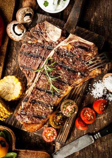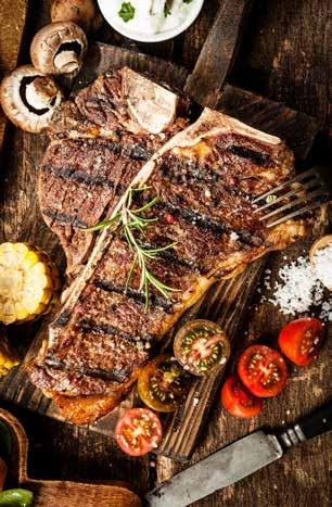 When a Friday night calls for steaks on the grill at Dave’s house, his cut of choice is a T-bone, sliced an inch and a quarter thick. “Cooking with a bone adds a lot of flavor, and this thickness makes it easier to get medium rare, which is the juiciest.” And if you think the reddish liquid that seeps out of a medium-rare steak is blood, think again. It’s actually a mix of water and myoglobin – a protein that stores and carries oxygen and gives the meat its color and richness.