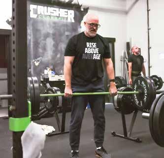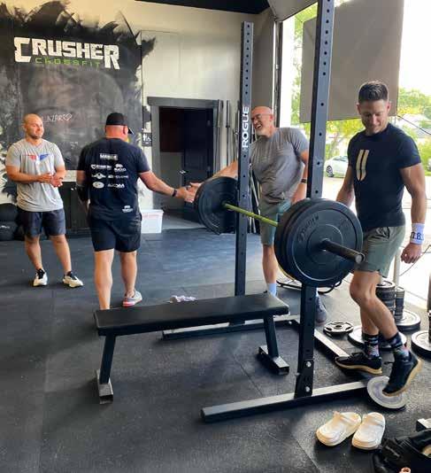 importantly, their families. Geo’s top advice for men who are either new to the gym or haven’t worked out in years: “Just walk through the door.” At Crusher, part of the mission is to make fitness approachable, inclusive, and not intimidating.