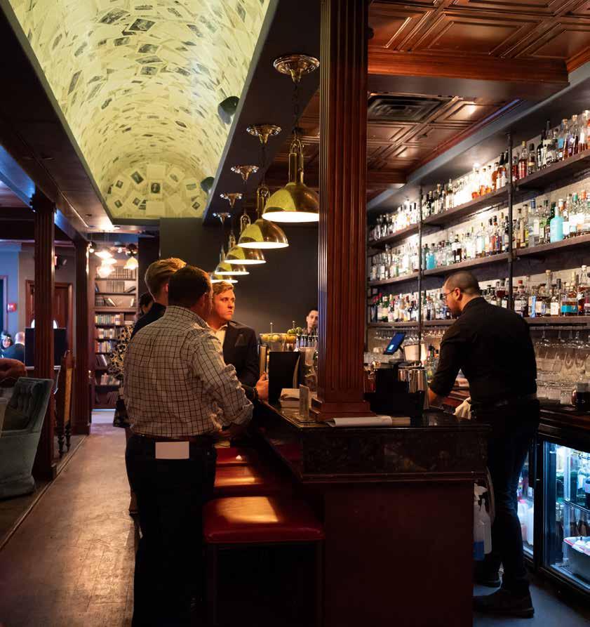 The upstairs bar is nestled in a restored library, with aged books and leather to keep moody drinker's company.