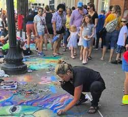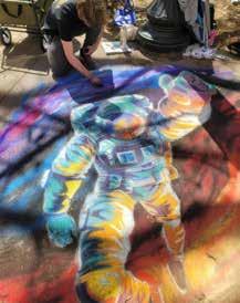 1: The 15th Annual Dogwood Arts Chalk Walk took place on April 1 in downtown Knoxville. 2: The Chalk Walk featured hundreds of artists and teams who worked all day on their pieces. 3: Categories were divided by age and grade: elementary, middle school, high school, college, family, and adult. 4: Artists of all ages participated in the event. 5:Thousands flocked to Market Square on Saturday to view the works-inprogress. 6: Cash prizes and awards were given to select artists who created imaginative pieces. 7: The Best in Show Winner was Cole Davis for his astronaut creation. Photography by Carol AuBuchon