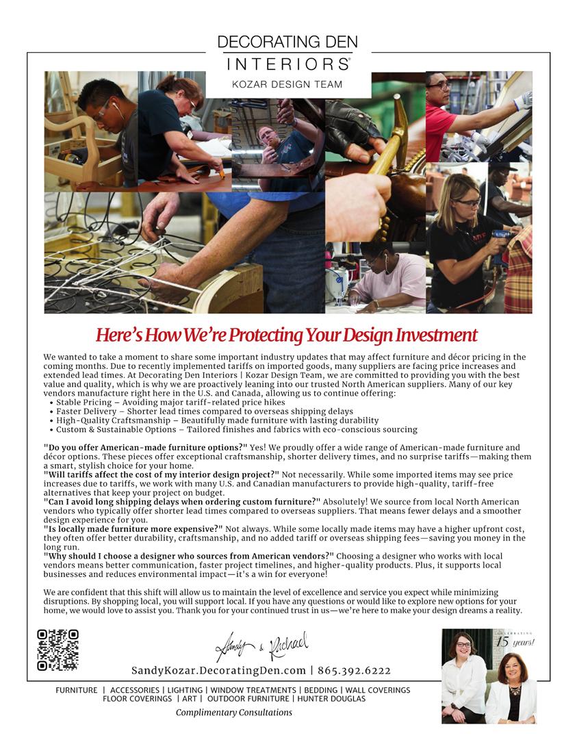 to a few hundred members. The Association works to better the neighborhood through communication, advocacy and community building. They hold regular monthly meetings and events such as Rhinestone Fest (a Dolly-themed event) and artist and makers Markets, and block parties. Robin has also served on several boards, such as UT College of Architecture and Design, Rotary Club of Knoxville, Downtown Knoxville Alliance, Keep Knoxville Beautiful and she has volunteered or donated work to organizations throughout Knoxville that make a difference in our community every day. From rescuing more than 30 dogs, throwing bridal and baby showers, babysitting her beloved granddaughters, always being there for her friends and family, to anonymous giving, Robin Easter is a person who shows up and does the right thing. What a blessing her friendship of 35 years has been, and what a blessing she and the work of her design house are to our community. Congratulations to Robin Easter Design!