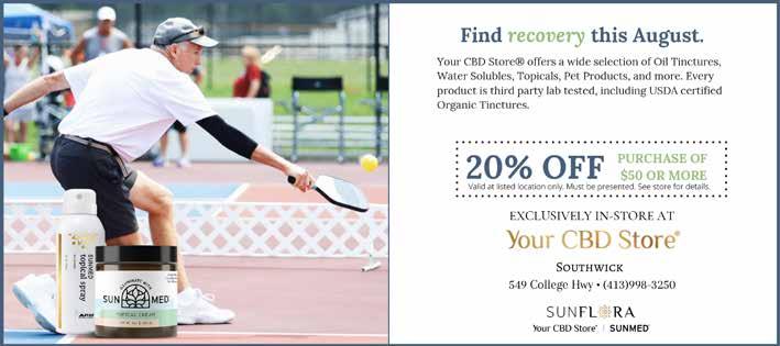 WE ARE GROWING! Careers in Manufacturing, Customer Service, Design, Engineering, Finance and Administrative Services Close to home Great Benefits For more Mestekwww.mestekcareers.cominformation:Call4135645746260NorthElmStreetWestfield,MA01056isanEqualOpportunityEmployer IRT-1848F-A edwardjones.com Member SIPC Tim Flynn Financial Advisor 20 Elm Street Suite A Westfield, MA 01085 413-562-4030 TRAININGPERFORMANCEFALL • YOUTH 11-14 • HIGH SCHOOL 14-18 • MEN’S AND WOMEN’S COLLEGE DEVELOPMENT 17+ 413-579-1922 | FULLPLATEFIT.COM FULLPLATESTRENGTH@GMAIL.COM | 66 SOUTH BROAD STREET. WESTFIELD • EXTENSIVE EVALUATION PROCESS • INDIVIDUALIZED TO YOUR NEEDS • IMPROVE YOUR WEAK POINTS • DEVELOP SPEED & POWER • EDUCATION FOR YOUR PERFORMANCE $30 OFF EVALUATIONS $ PRESENTING SPONSOR Contests!Prizes!Raffle! Friday, September 16, 2022 East Mountain Country Club, Westfield, MA Join us for a good time while supporting RVCC’s children’s and youth mental health services! Shotgun start: 10:30 AM; $100 fee includes golf, cart, lunch, and dinner! Visit rvccinc.org/golf for more information, to register, or sponsor online. Questions? Please email development@holyokehealth.com, or call 413.534.2579 7 th Annual 22