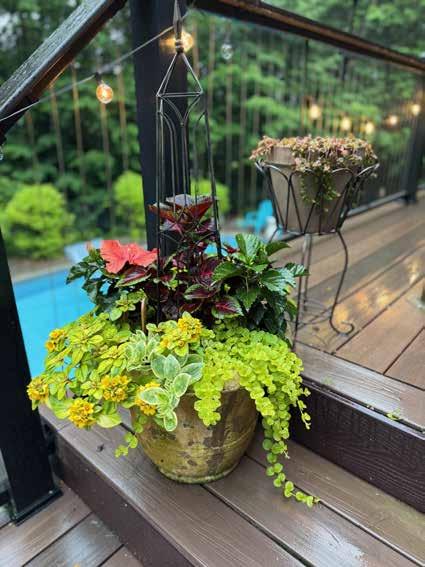 As summer winds down, Tina recommends transitioning outdoor pots to fall flowers, such as mums and decorative kale, and for the holidays, fill pots with greenery and berries.