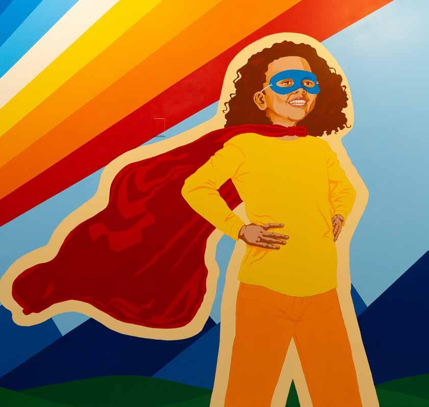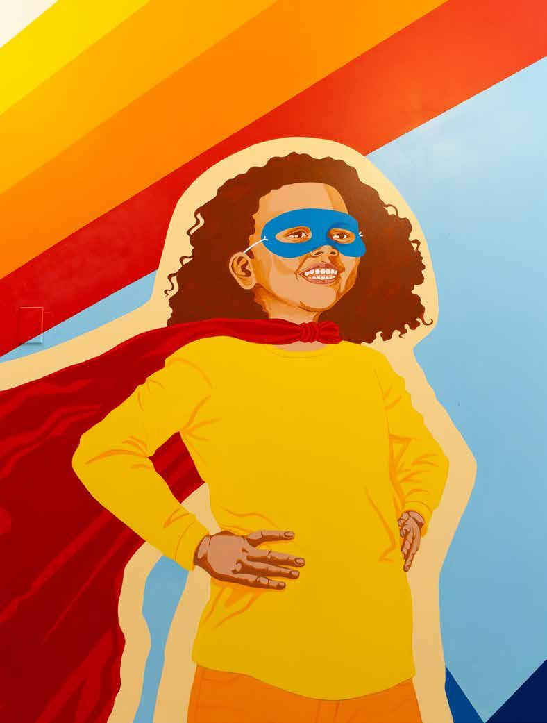 After two and a half months of planning and painting, the mural was finished. “I hope the mural gives kids something to lean on, to brighten their mood, to remind them they have what it takes to heal,” Alonzo says. “If it can give them even one moment of lightness, then it’s doing exactly what it’s meant to do.”