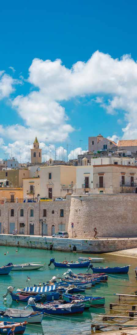 Along the sunlit harbor of Bisceglie, life unfolds by the sea where stone walls, fishing boats, and tradition inspire the flavors of