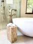Modeled after the inside of a whiskey barrel, the ceiling of Twin Staves Cocktail Lounge is adorned with wood elements that mimic barrel staves, while oversized, custom-made metal banding was winched into place - a feat not easily accomplished. The result speaks to the owners’ dedication to creating an authentic gathering place, one designed for people to connect over glasses of premium whiskey.