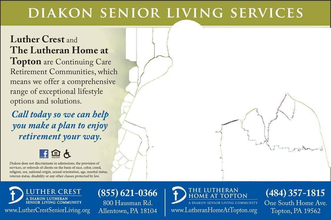 • State-of-the-Art Design • Spacious Common Areas • Short Term / Respite Stays • Restaurant-Style Dining • Activity Programming • Salon Services • Individual Activities • Outdoor Gardens • Fitness Area SENIOR LIVING & MEMORY CARE www.HGSeniorLiving.com 610-841-4478 415 Blue Barn Road | Allentown, PA 18104 Proud member of Published by