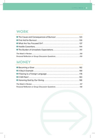 WORK The Cause and Consequences of Burnout. . . . . . . . . . . . . . . . . . . . . . . . . . 123 First Aid for Burnout. . . . . . . . . . . . . . . . . . . . . . . . . . . . . . . . . . . . . . . . . . . . . . . 130 What Are You Focused On?. . . . . . . . . . . . . . . . . . . . . . . . . . . . . . . . . . . . . . . . 137 Hostile Coworkers. . . . . . . . . . . . . . . . . . . . . . . . . . . . . . . . . . . . . . . . . . . . . . . . . 144 The Burden of Unrealistic Expectations. . . . . . . . . . . . . . . . . . . . . . . . . . . . . 151 The Week in Review. . . . . . . . . . . . . . . . . . . . . . . . . . . . . . . . . . . . . . . . . . . . . . . . . . . . . . . . . . . . 158 Personal Reflection or Group Discussion Questions. . . . . . . . . . . . . . . . . . . . . . . . . . . . . . . 159
